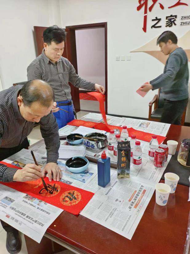 萬(wàn)基書(shū)法愛(ài)好者書(shū)寫(xiě)春聯(lián):